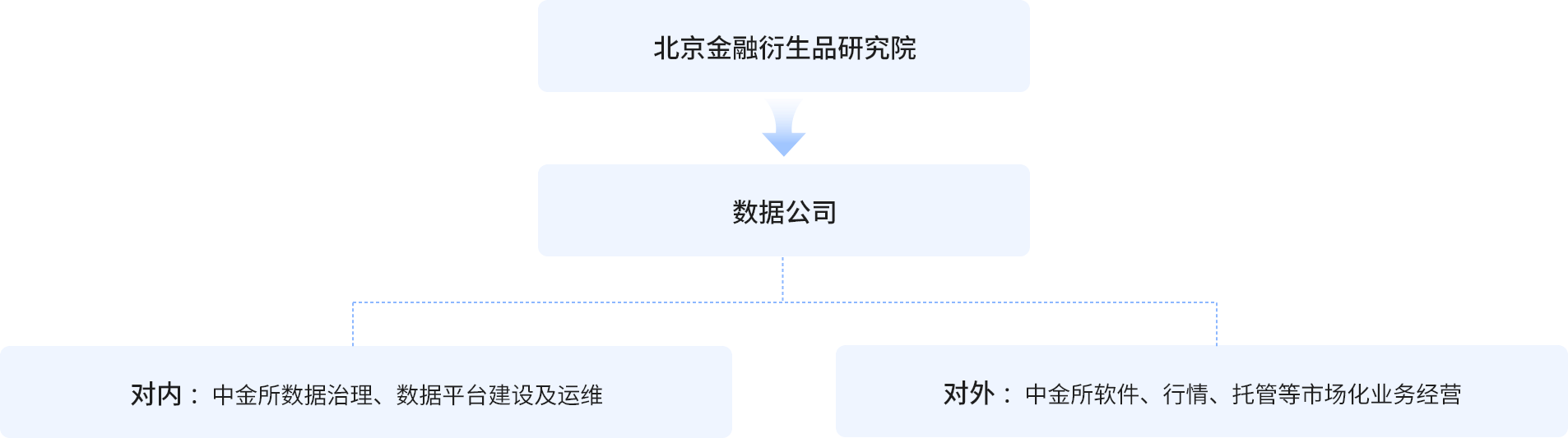 根據(jù)中金所統(tǒng)一規(guī)劃部署,原中金所下屬子公司“北京金融衍生品研究院”已完成遷滬、更名、轉(zhuǎn)型等一系列相關(guān)工作?!氨本┙鹑谘苌费芯吭骸币颜礁麨椤爸薪鹚鶖?shù)據(jù)有限公司”(簡稱“數(shù)據(jù)公司”)。